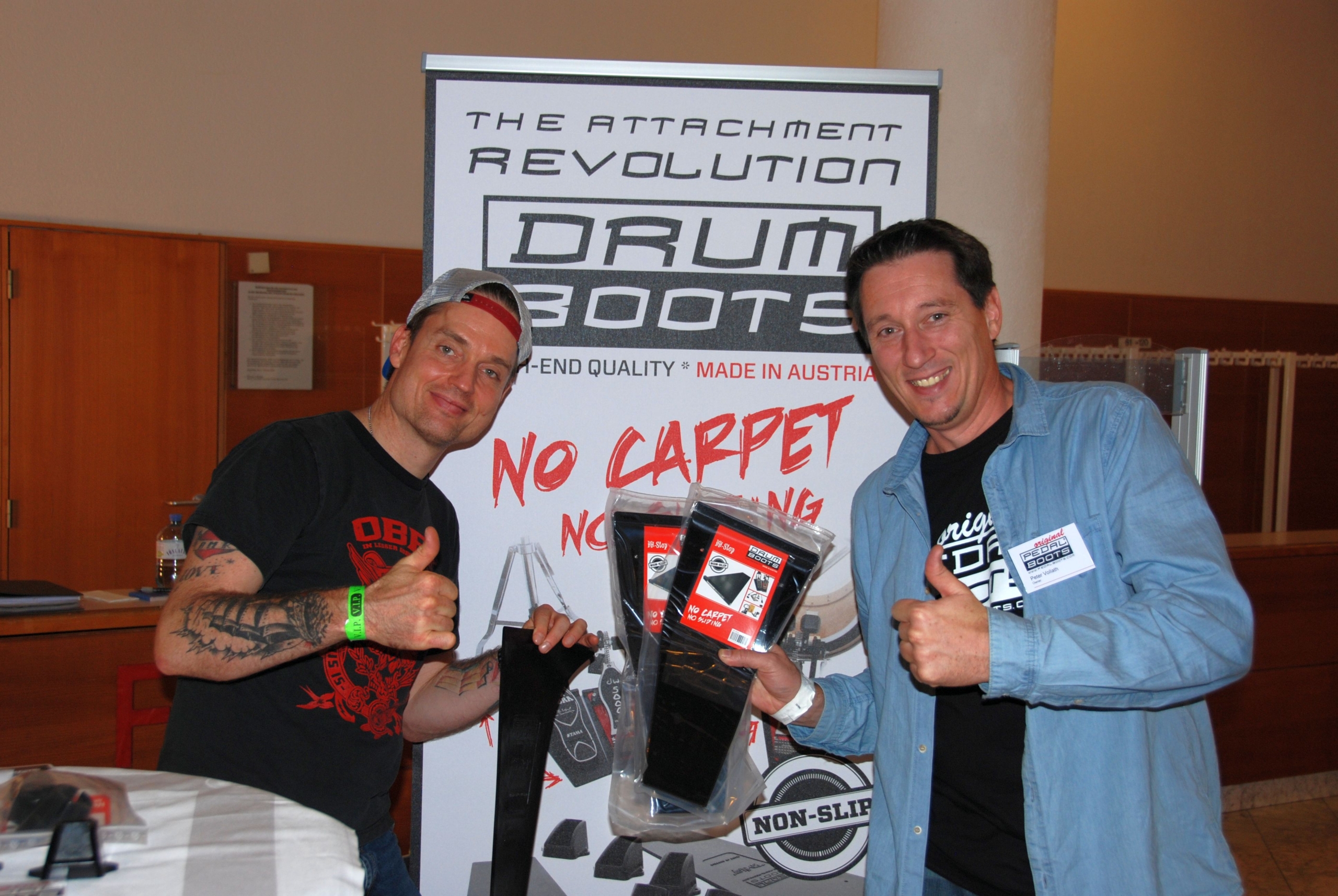 Bye bye f****** Rug”!!! No more dragging dusty carpets, no more chutes on stage or in the studio! Why did the Austrians come up with it again??? Cool thing the DRUMBOOTS. Yeah!
